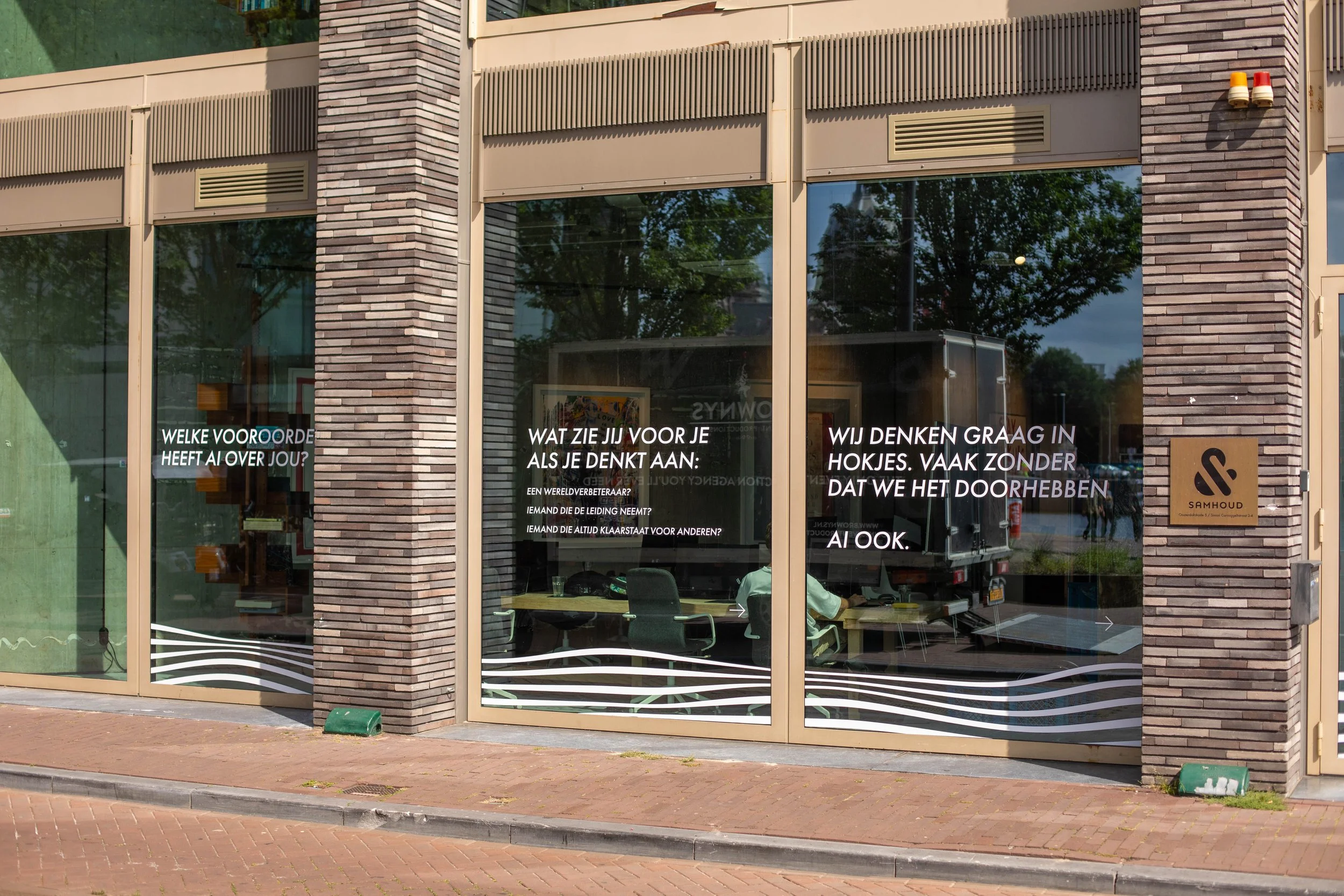 Mirror of Humanity nodigt uit om de relatie tussen menselijkheid en technologie te heroverwegen. De bestickering van de ramen representeert deze reflectie letterlijk door middel van spiegel folie.